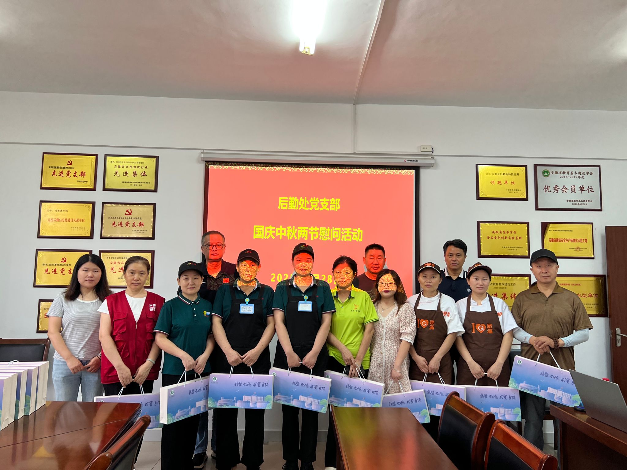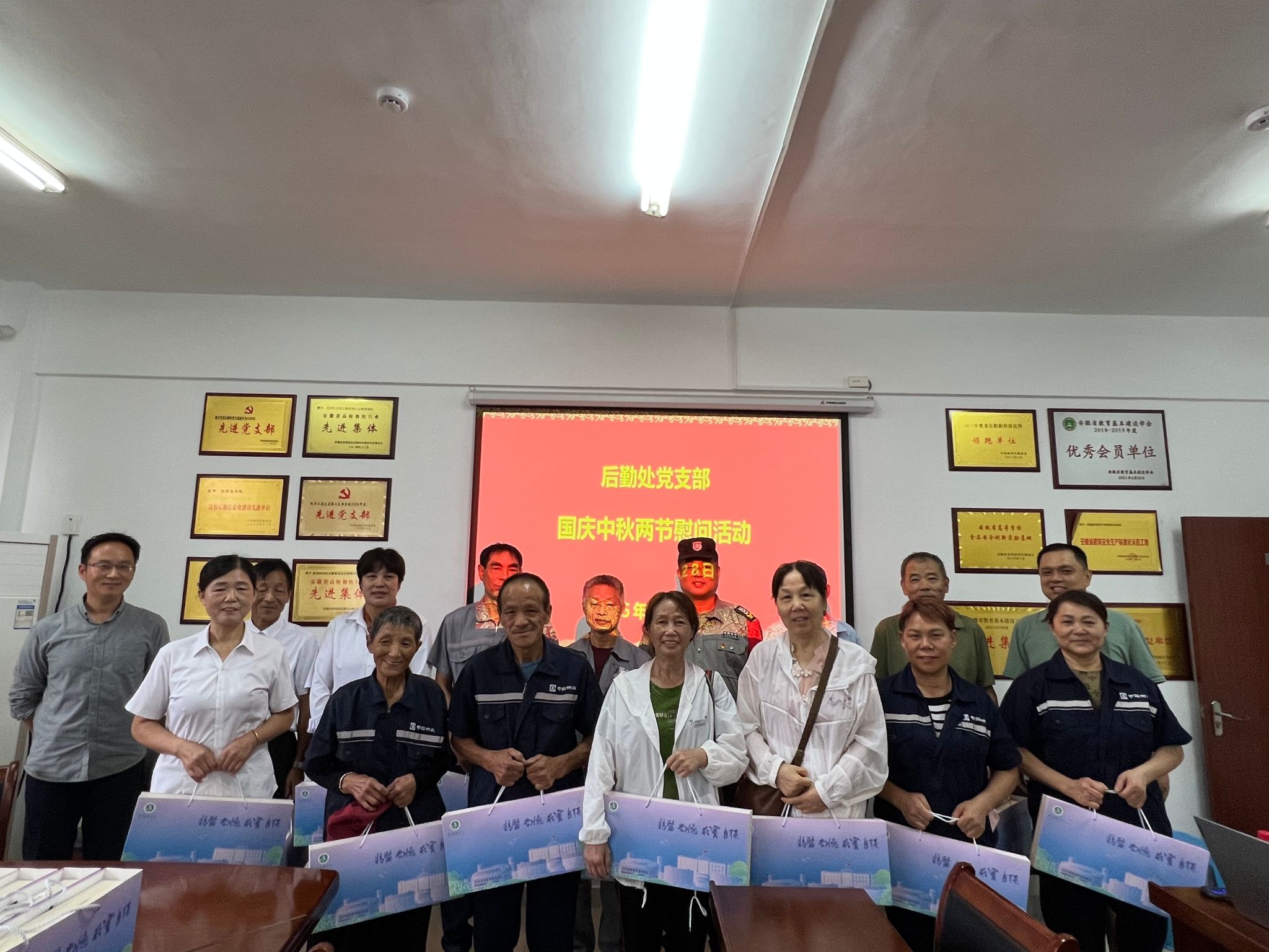 在国庆、中秋“双节”来临之际,为表达对服务学校、保障校园正常运行的社会服务企业优秀员工的感谢与关怀,9月28日上午,后勤处党支部在支部党员活动室组织开展了国庆中秋双节慰问活动。
