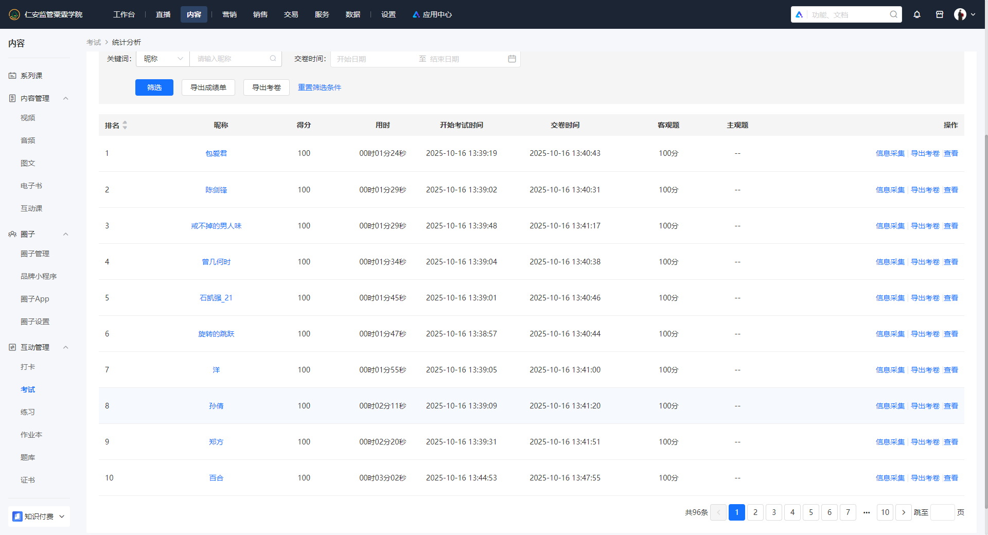 现场考试成绩及统计