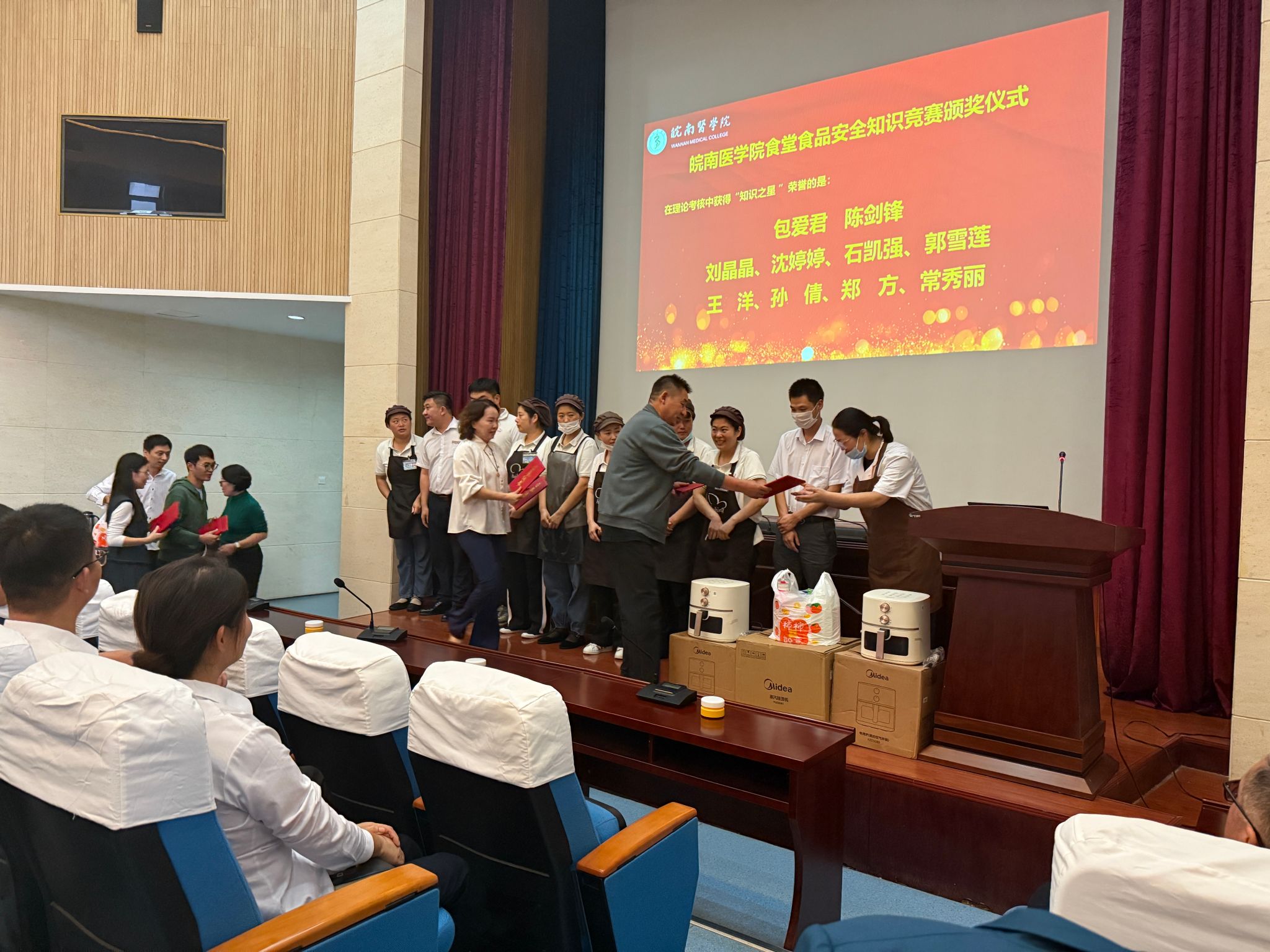 活动结束后,后勤管理处为优胜者颁发了奖品,同时为每位获奖队员授予荣誉证书,充分增强了广大餐饮企业员工的归属感、职业荣誉感、凝聚力和爱校情怀。